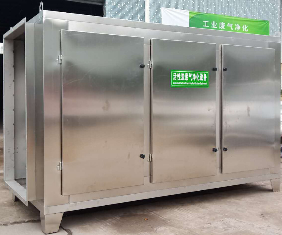 不锈钢活性炭处理箱是一种干式废气处理设备。由箱体和装填在箱体内的吸附单元组成。根据吸附单元的数量和风量共分为多种规格,活性炭处理箱选择不同填料可以处理多种不同废气。