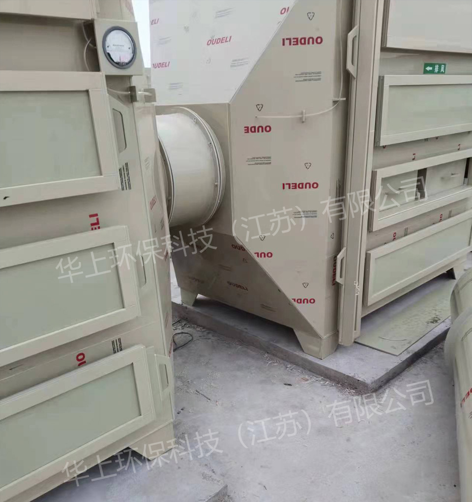 根据现场资料及我司在新材料废气处理行业经验,现场采用1组有机排风风机直接处理,处理总风量为20000m3/h,工艺采用“20000m3/h风量除尘设备+二级活性炭吸附三套”,系统包括处理设备和通风设备。